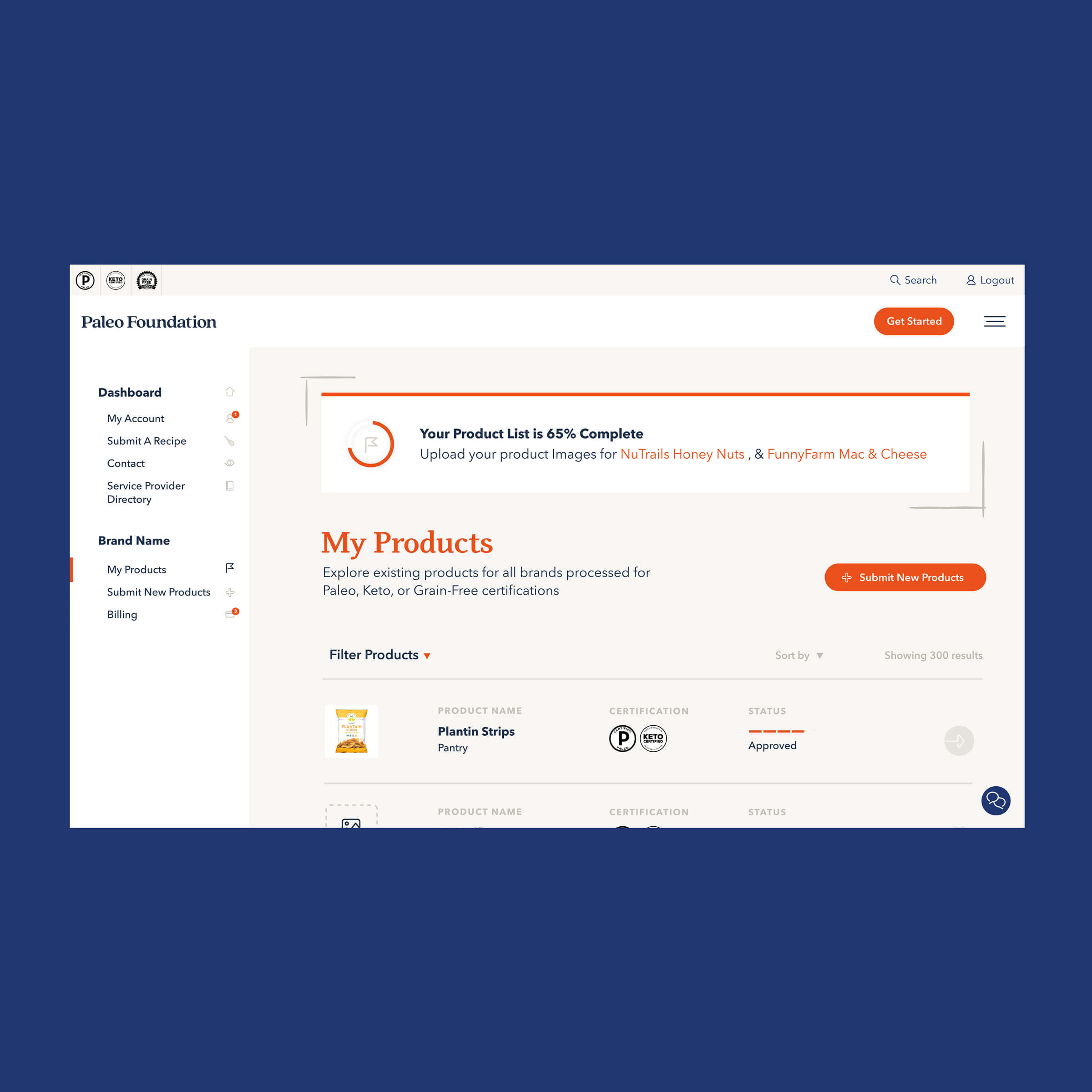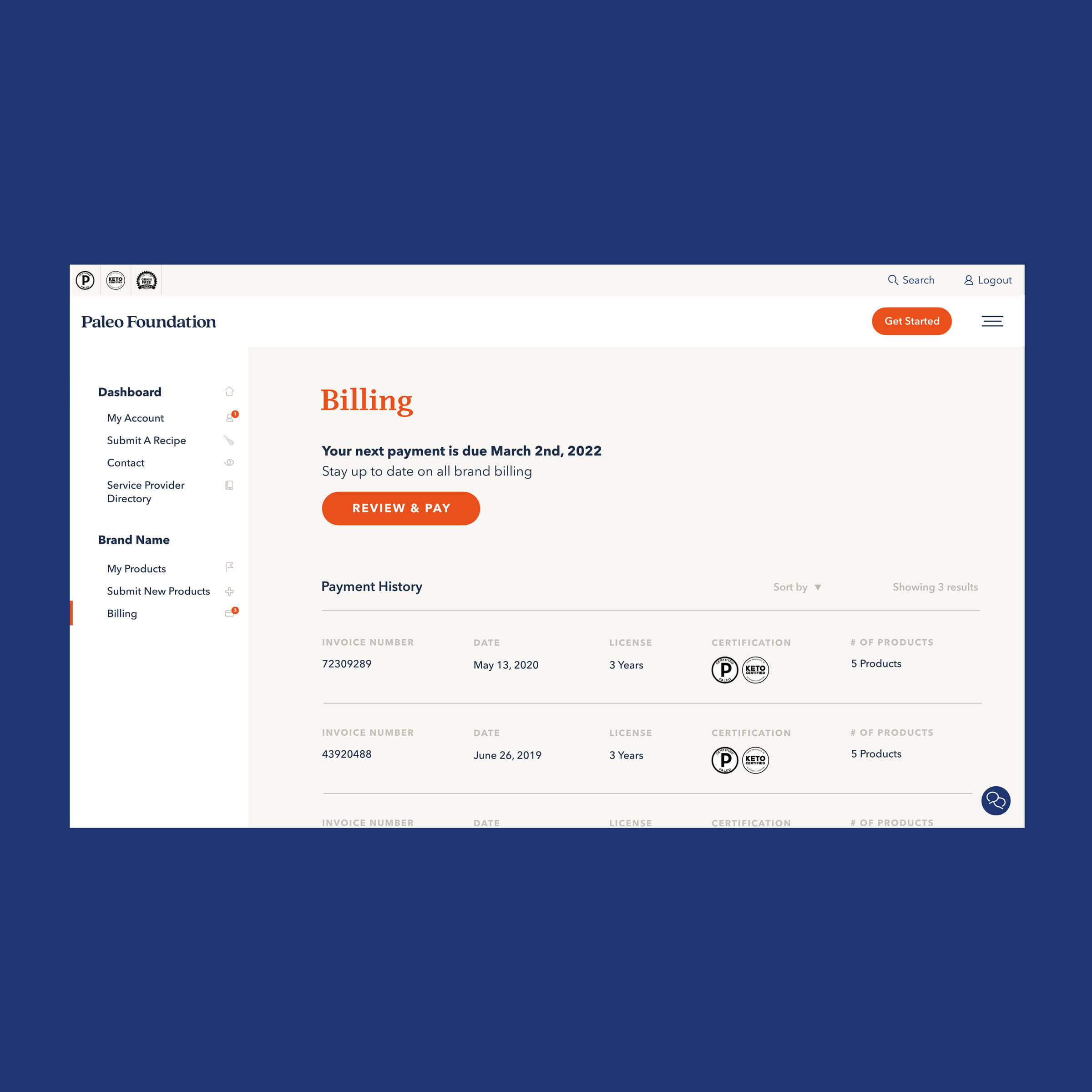 The Paleo Foundation: The Leading Paleo and Keto Certification organization worldwide since 2009, with thousands of products certified. In Paleo Foundations website launch, the inclusion of a digital portal with variety of organizational access allowed not only an increase in their business ROI, but a tailored experience to their business where printed documents and means of communication where now able to be allocated in a single digital experience. Creating efficiency between certifier, supplier, and brand.